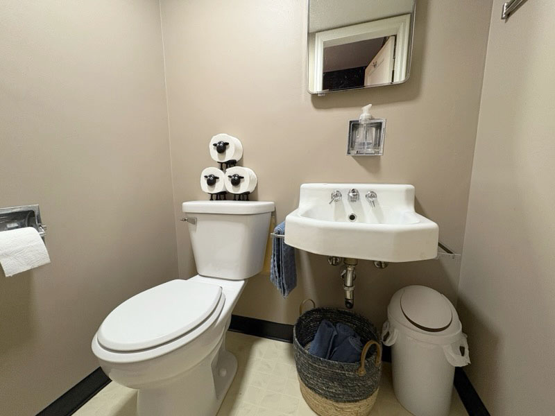 - Barbre custom-built cabinets in bathroom